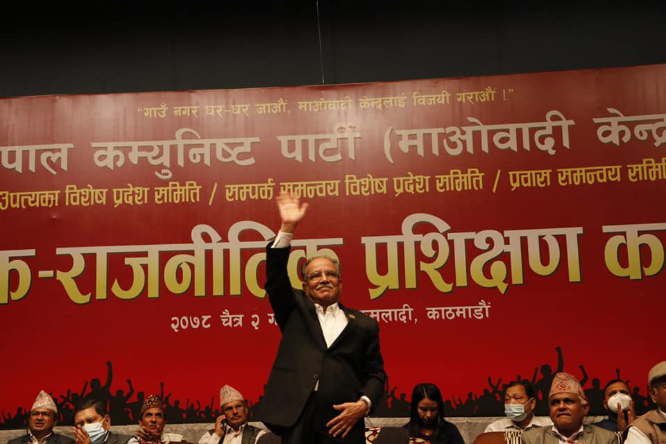 बुधबार काठमाडौंमा भएको पार्टीको आन्तरिक तालिममा उनले ‘हामी हेरफेर गर्ने, षड्यन्त्र गर्ने, बाकस फेर्ने वा कुनै पनि हिसाबले निर्वाचनलाई प्रभाव पार्ने काममा निपुण नभएको दाबी गरे । कांग्रेस र एमाले यस क्षेत्रका विज्ञ हुन् । हामी उनीहरूलाई एकअर्काविरुद्ध षड्यन्त्र र षड्यन्त्र गर्न सक्दैनौं। हामीले गर्न सक्ने भनेको आफैलाई पिट्नु हो। इट्टाको प्रतिक्रियाको रूपमा ढुङ्गा दिनु एक व्यावहारिक विकल्प हो। प्रचण्डले आगामी निर्वाचनले पार्टीको भाग्य निर्धारण गर्ने समेत बताए ।