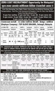 मलेसियाको प्रतिष्ठित कम्पनि टप ग्लोबले ५० जना पुरुष कामदारहरुको माग गरेको छ। टिकेट,भिसा र स्वास्थ्य जाच, स्वास्थ्य बिमा,सामाजिक सुरक्षा कोष लगायत निशुल्क गरिने कम्पनीले जनाएको छ।
