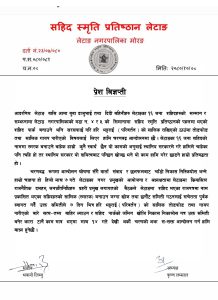 माघ ४ गते सहिद क. हरि भट्टराई(परिवर्तन) को शालिक तोडफोड र गायब बनाईएको बारे सत्यतथ्य सार्बजनिक होस र ७ दिन भित्र जग्गा खोजी र निकास नगरपालिकाले दिनुपर्ने भन्दै अल्टिमेटम समेत दिएको छ।