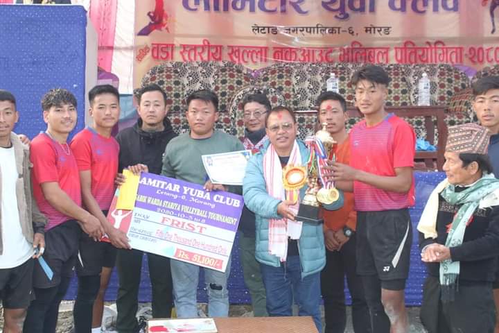 साबिक लेटाङ्ग वडा स्तरीय भलिबलमा वाराङ्गिले मार्यो बाजि, जित्यो ५१ हजार ।